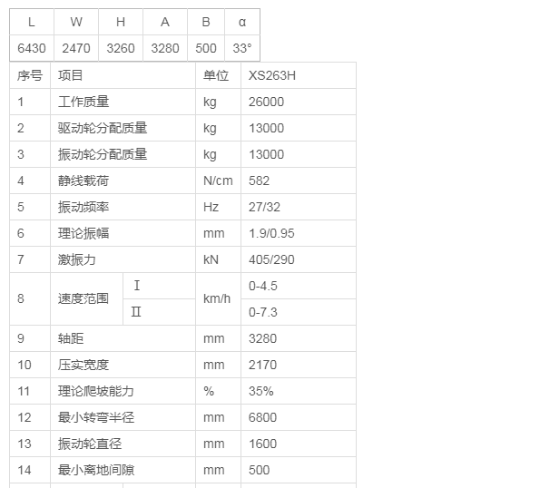 XS263H振动压路机是有徐工集团工程机械股份有限公司自主研发的一款高效节能超重型机械驱动单钢轮振动压路机。该产品总体参数匹配合理,运用上柴三阶段8D发动机、液压阻尼控制技术、静液压传动技术,提升了操纵舒适性;运用“三心合一”技术,优化传动系统,使压实性能和效率得到有效提升;采用四级制动,且配备气顶油末端制动系统,保证整机安全可靠。